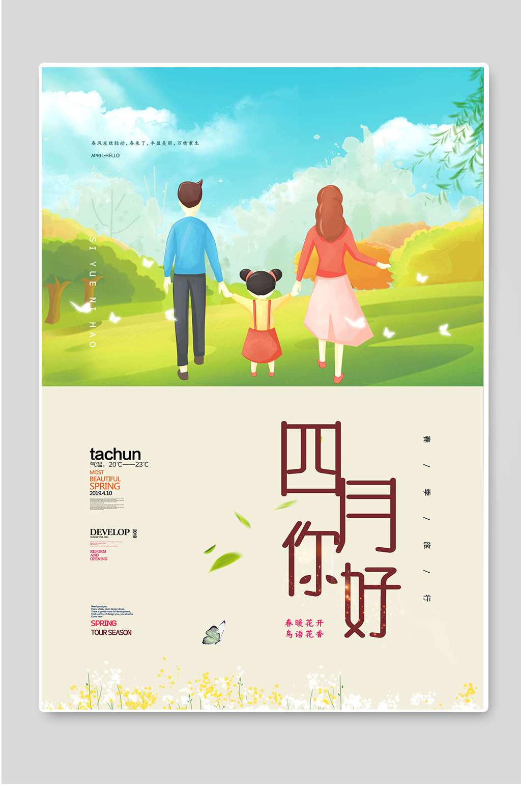四月4月你好春暖花开肆月海报 海报素材下载 众图网