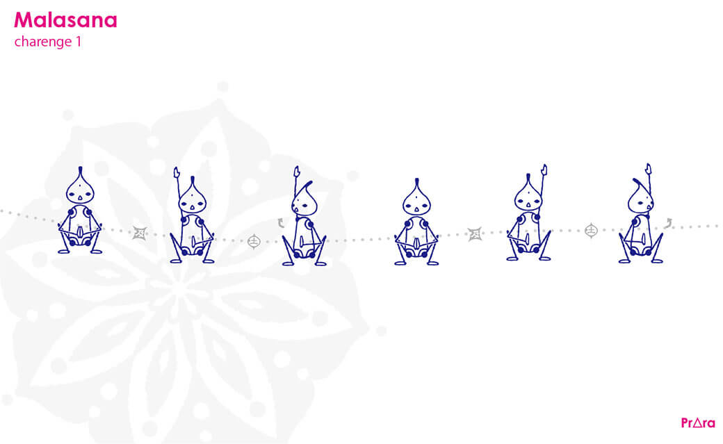 花輪のポーズ バリエーション- Eka Pada Malasanaエーカパーダ・マーラーサナ片脚の花輪のポーズ 難しいポーズですが腹筋が鍛えられます。 また臓器に適度な運動が加えられ肩が開くようになります。 腕で脚を7山のポーズ 立ち上がり山のポーズで深呼吸をして呼吸を整えます。 花輪のポーズのコツやポイント うまくしゃがめない場合は、かかとにタオルやブランケットを置き、足が柔軟になるまで慣らして